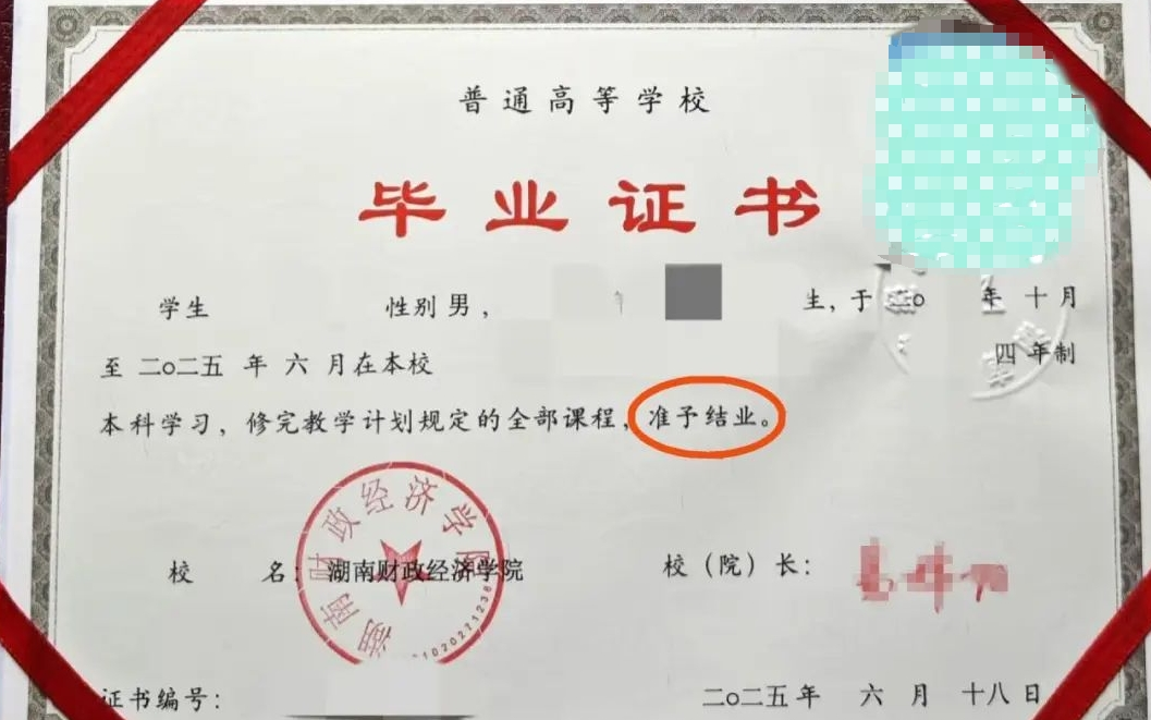 近日,多名网友在社交平台发帖称,湖南财政经济学院今年的毕业证出现印刷错误,“准予毕业”印成了“准予结业”。学生们互相调侃:“恭喜大家顺利结业。”